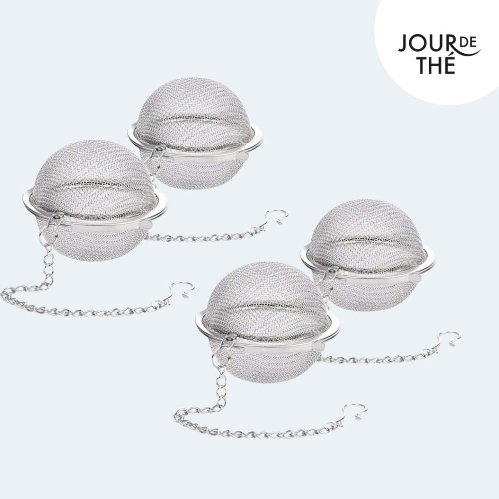 ACCESSOIRESBoules à thé de 4,5 cm de diamètre, fabriquées en maille fine d’acier inoxydable de qualité alimentaire. Elles assurent une infusion optimale et homogène des arômes tout en retenant les plus petites particules. Leur système d’ouverture et de fermeture ingénieux les rend idéales pour un usage quotidien, à la maison comme au bureau, et leur entretien est simplifié grâce à un nettoyage facile à l’eau ou au lave-vaisselle